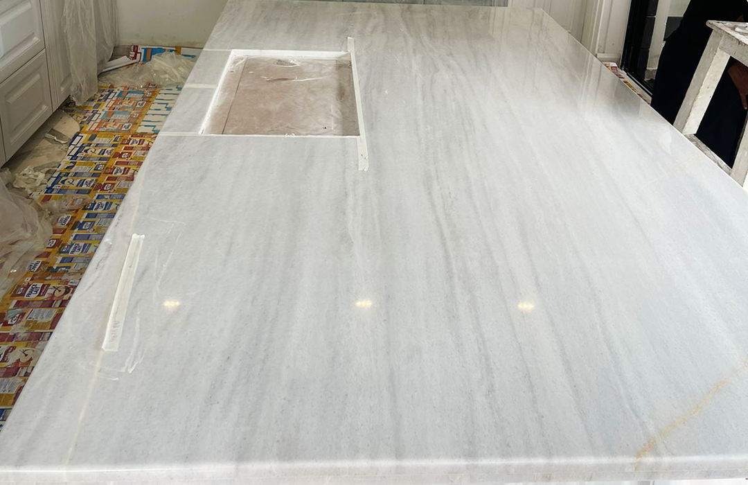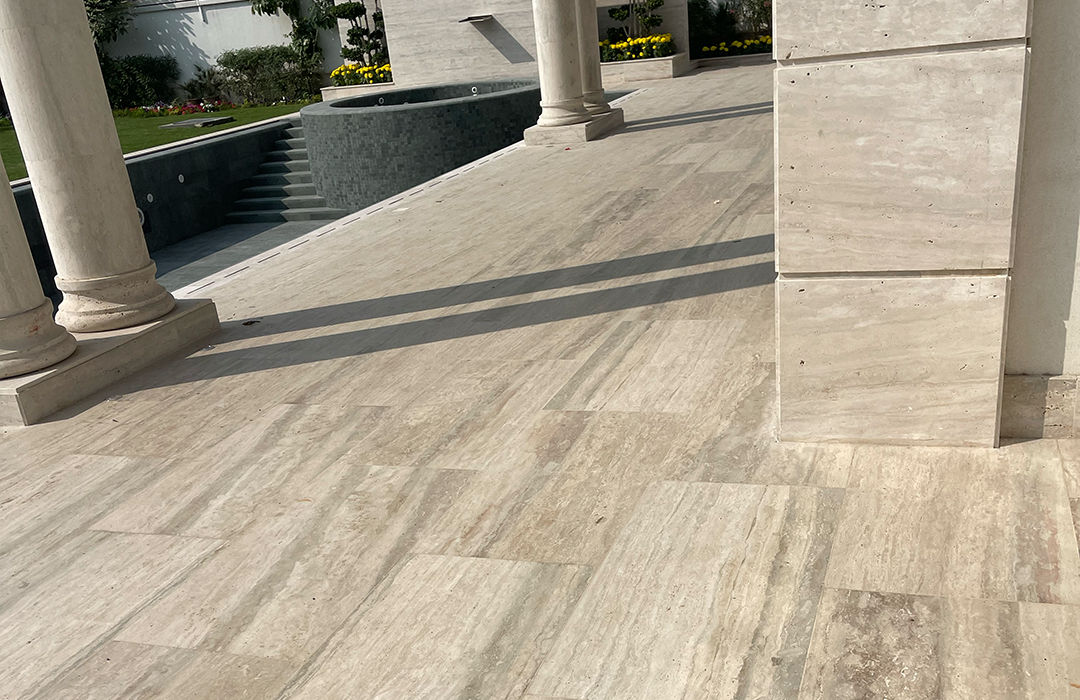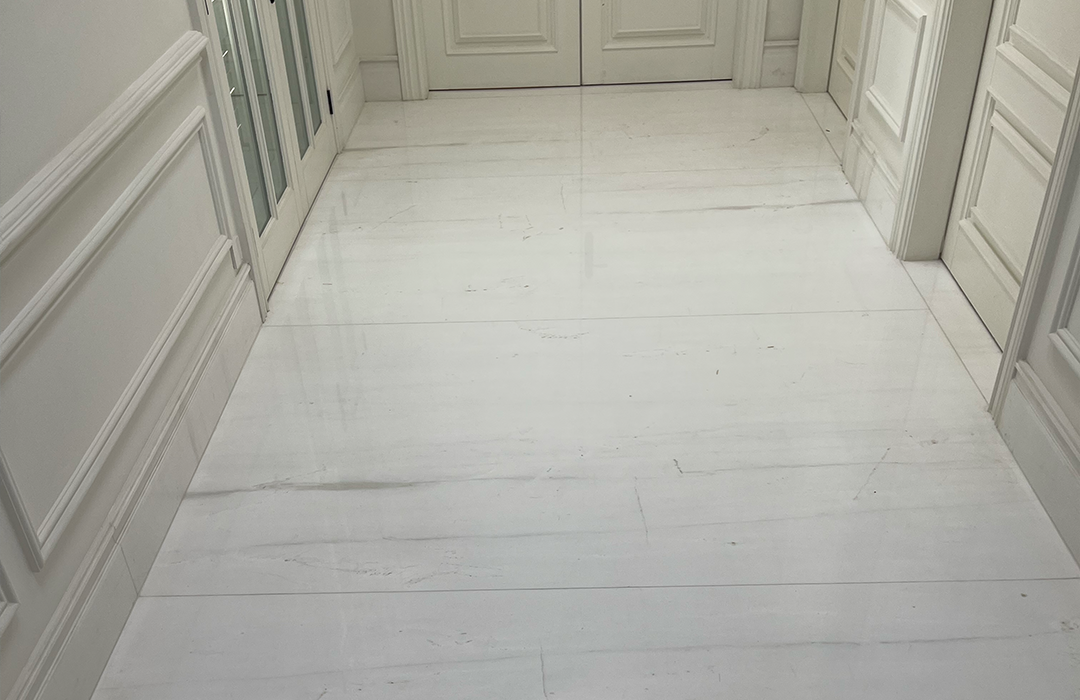 This elegant marble mirrors the soft, warm hues of weathered wood, gracing the floor with a natural charm. Its whitish tones create a serene ambiance, making it a perfect choice for both modern and rustic interiors.
